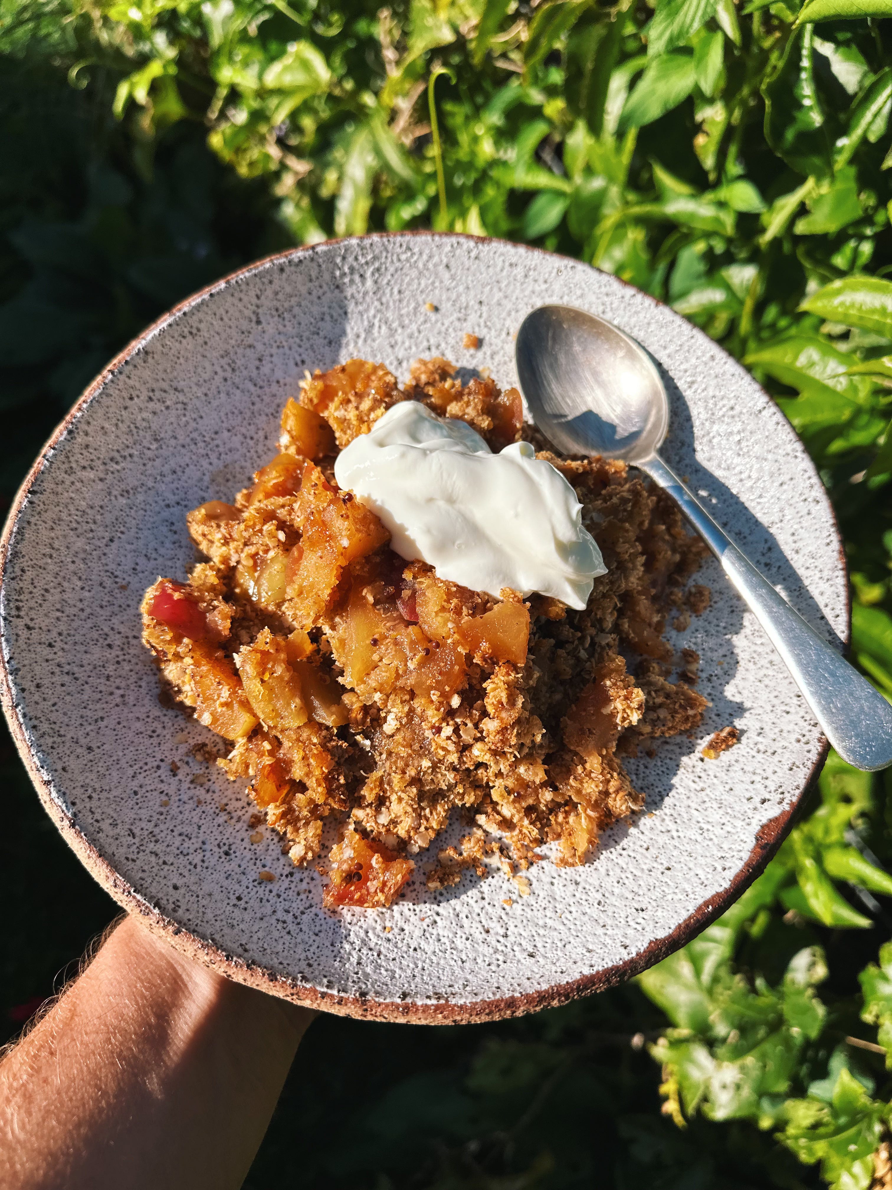 Like most people, I don’t like being told what to do or how to do it, haha. As I am writing this, I see that this has applied to my creative take on cooking. I often find traditional recipes boring, and I like to challenge them by creating my own take on these old recipes and adding unique twists. Everyone loves a good apple crumble. This particular recipe is a delightful example of my culinary experimentation. Instead of the usual oat and flour bases, I've used quinoa flakes, which add a wonderful texture and nutty flavour. To elevate the taste further, I've incorporated sumac, a tangy and slightly citrusy spice that brings an unexpected but delightful zing. Some sneaky mustard seeds are mixed into the apple, which works nicely. Ready to dive into something deliciously different? Let's go!